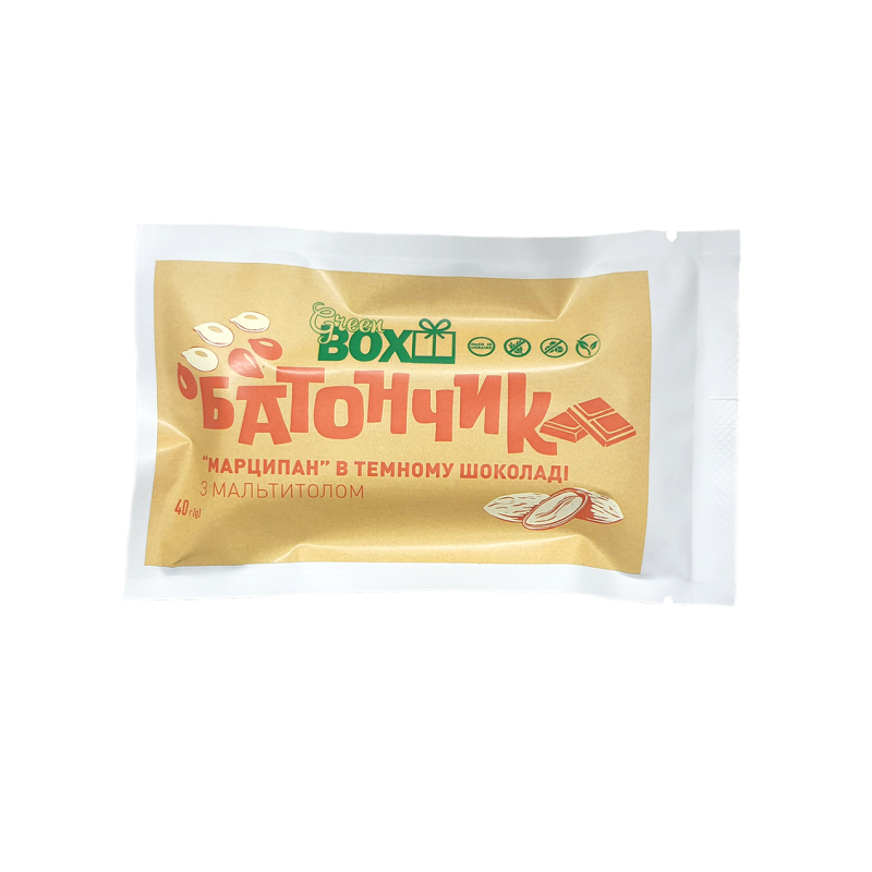 Теги: Батончик «Марципан» в темному шоколаді, 40 грам, без цукру, веган