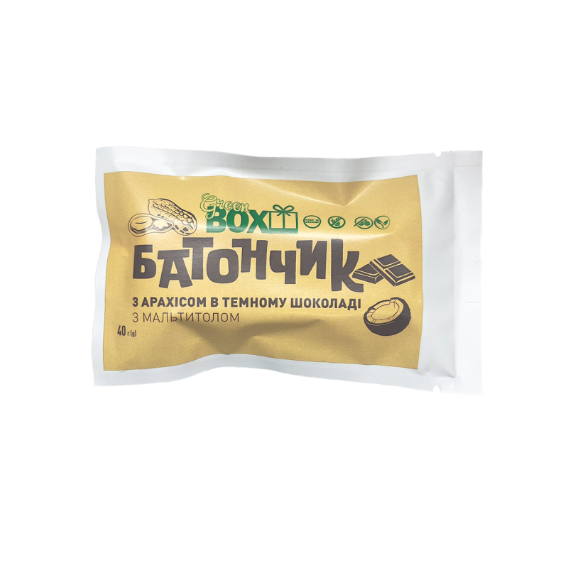 Теги: Батончик з Арахісом в темному шоколаді, 40 грам, арахіс, солодкий перекус, корисний, без цукру